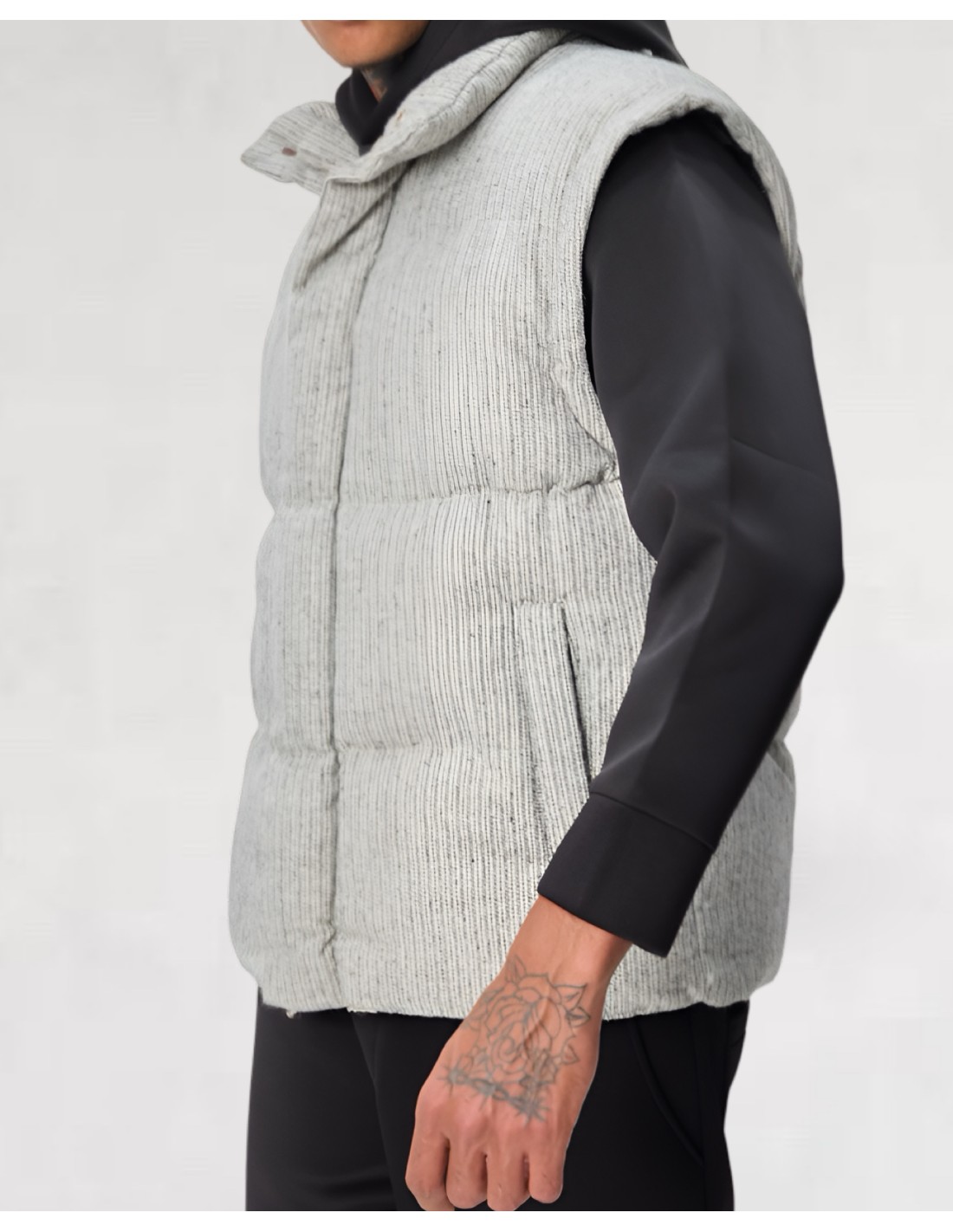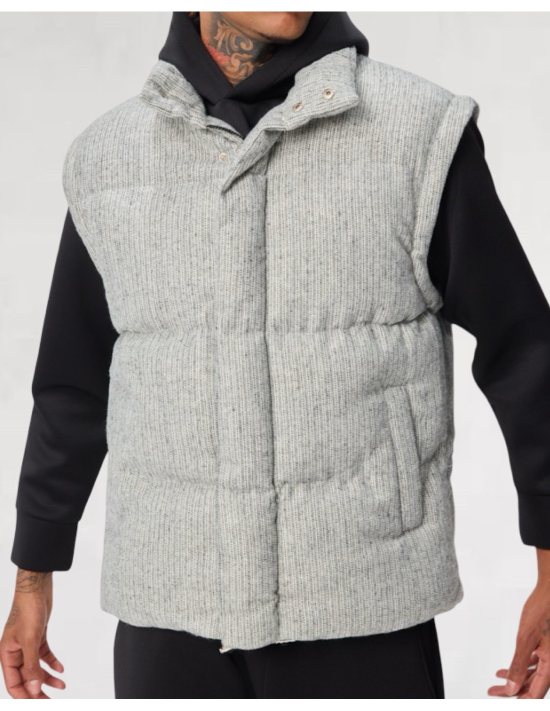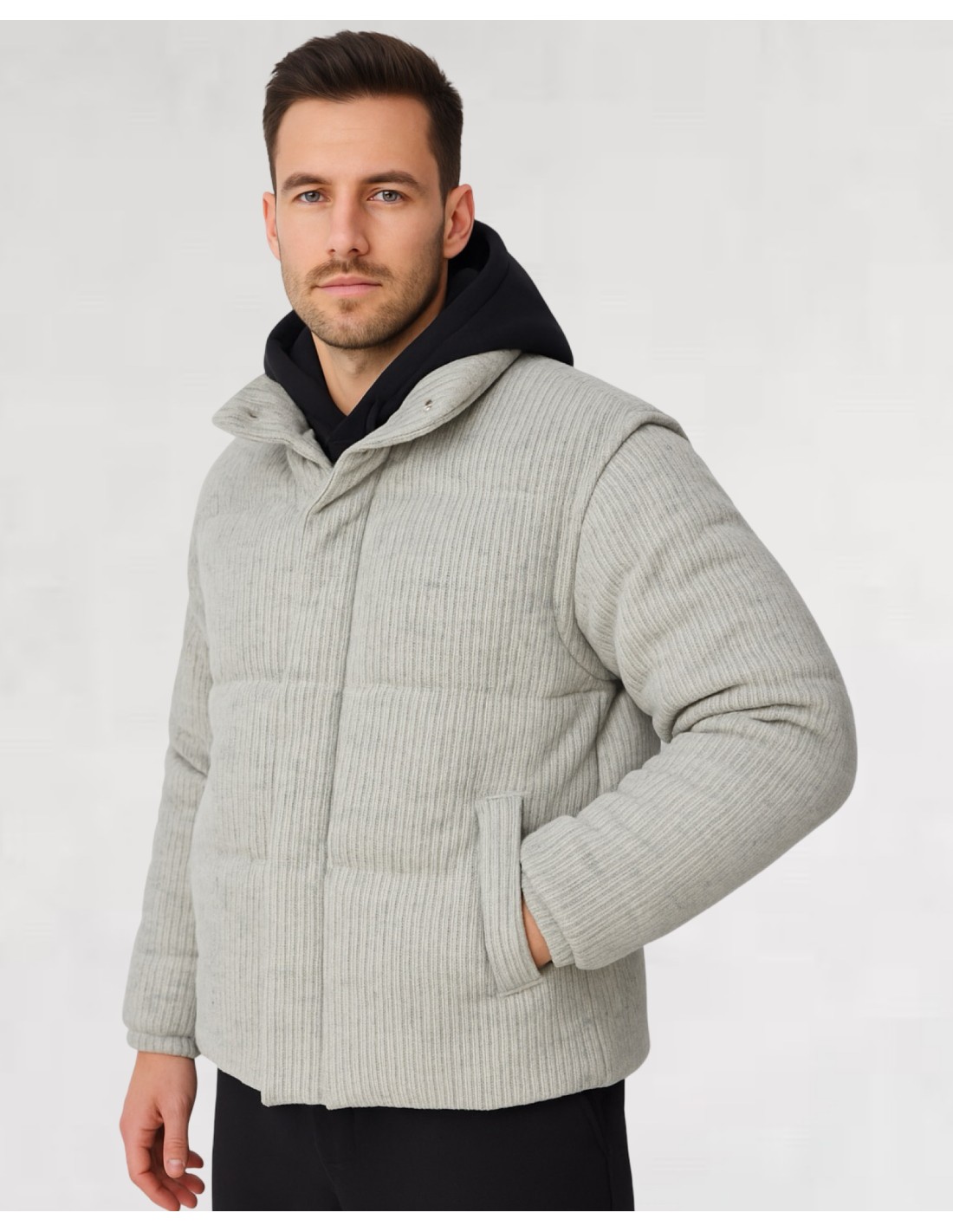 Doudoune grise homme 100 % polyester, au style moderne et texturé.