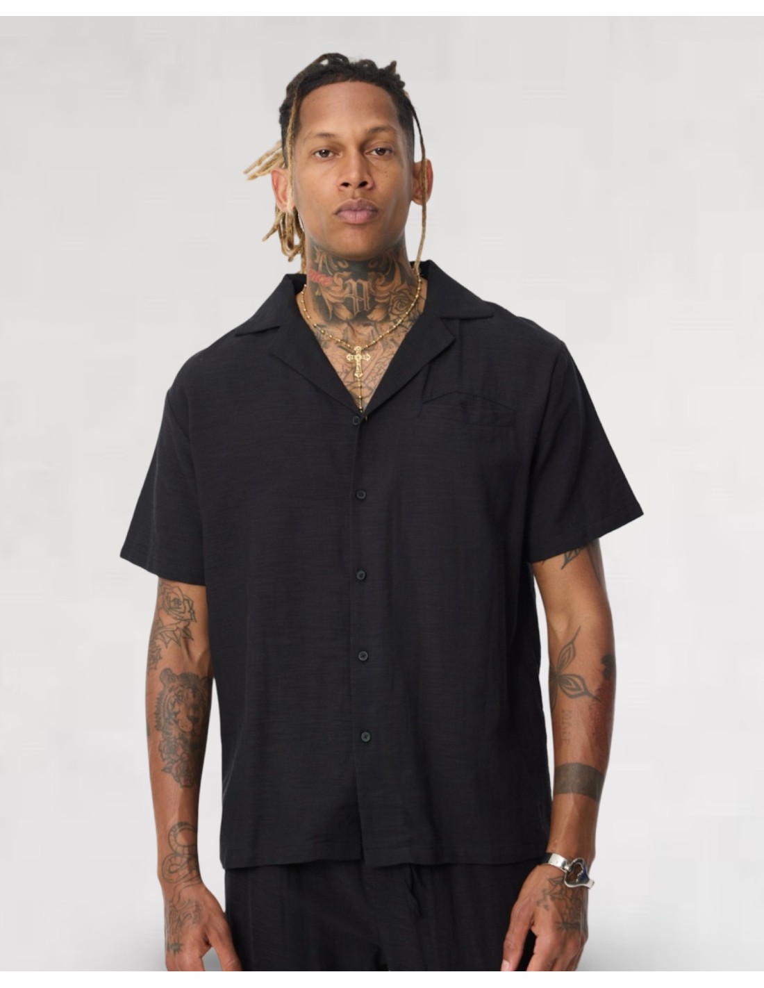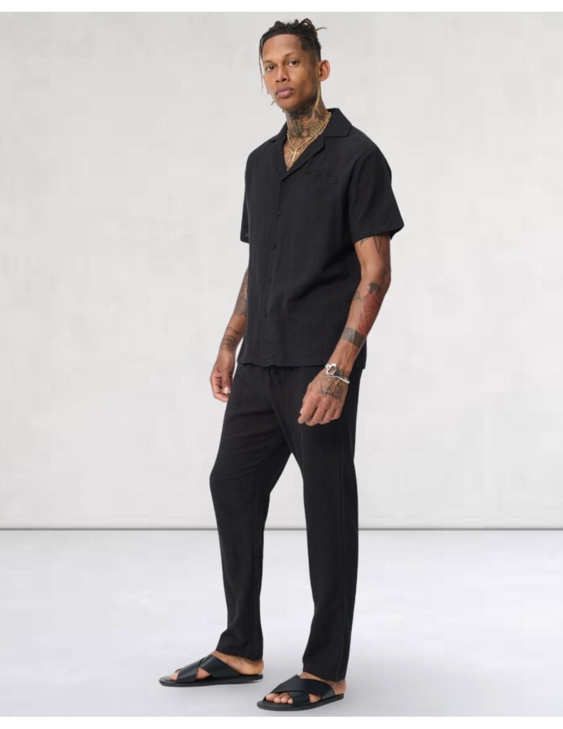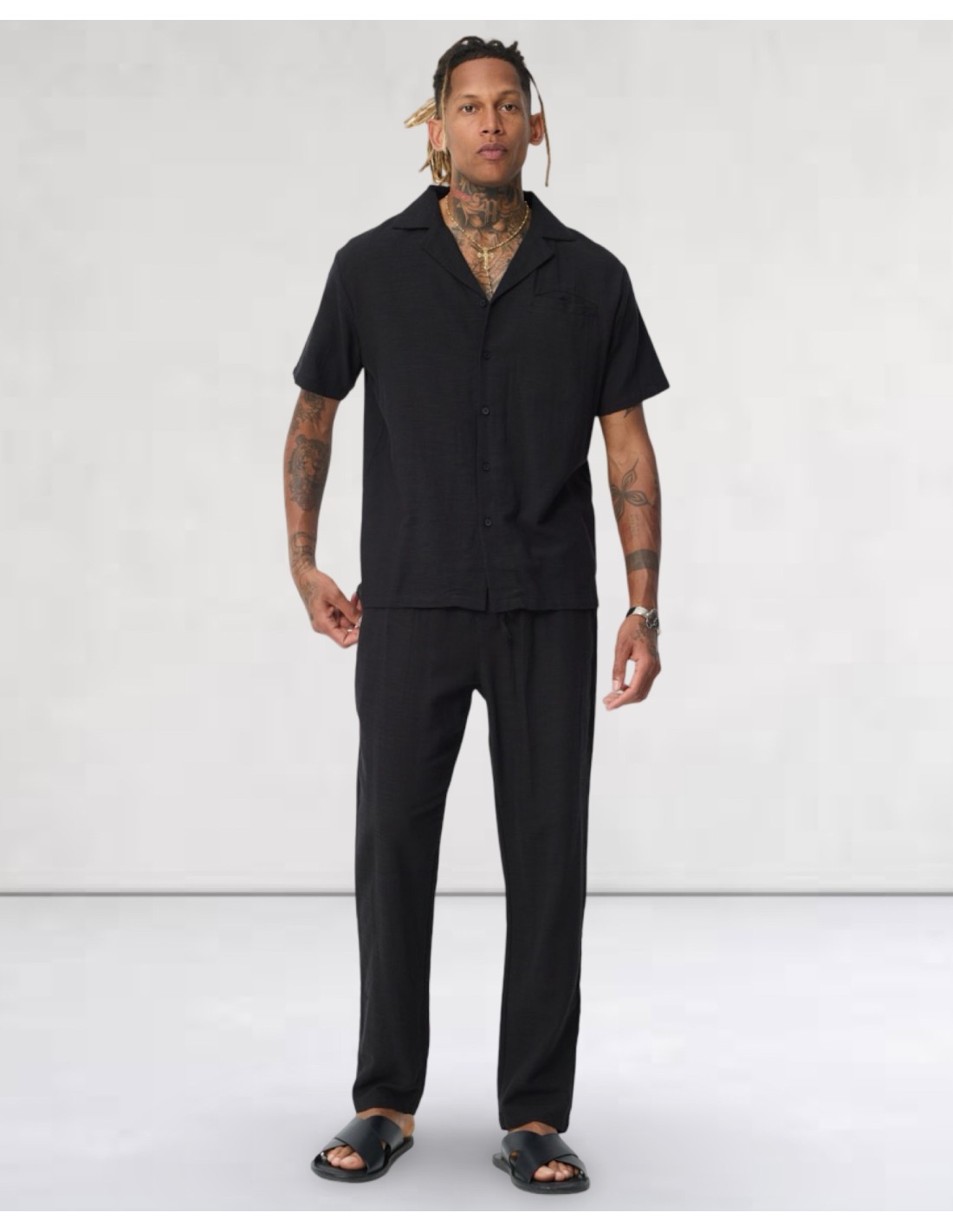 Ensemble pantalon chemisette fluide noir