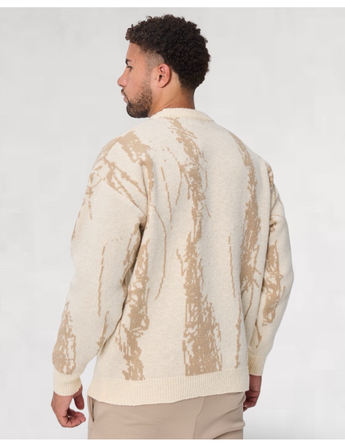 Pull à motif abstrait beige et camel