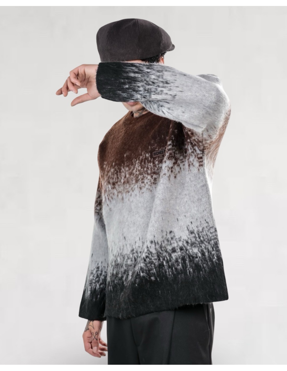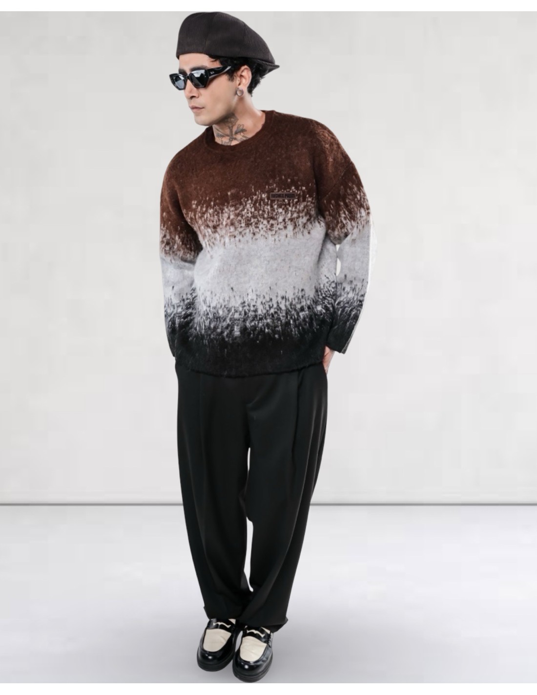 Pull homme dégradé marron gris noir – maille douce effet mohair – coupe oversize