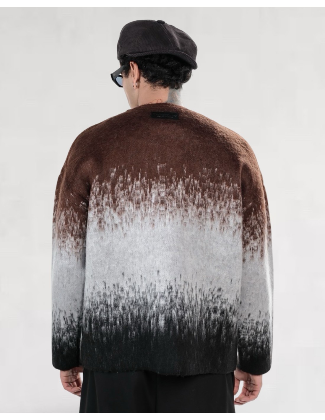 Pull homme en maille douce effet mohair avec dégradé marron, gris et noir. Coupe légèrement oversize pour un style moderne et confortable. Idéal pour l’automne et l’hiver, à porter avec un jean, un pantalon droit ou un cargo. Texture chaude et agréable au toucher.
