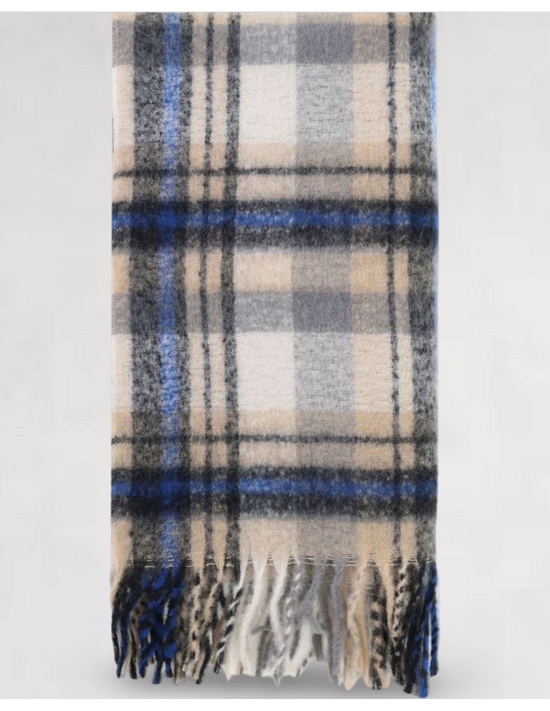 Fusion de confort et de style, ce foulard à carreaux enveloppe le cou avec une touche de sophistication.