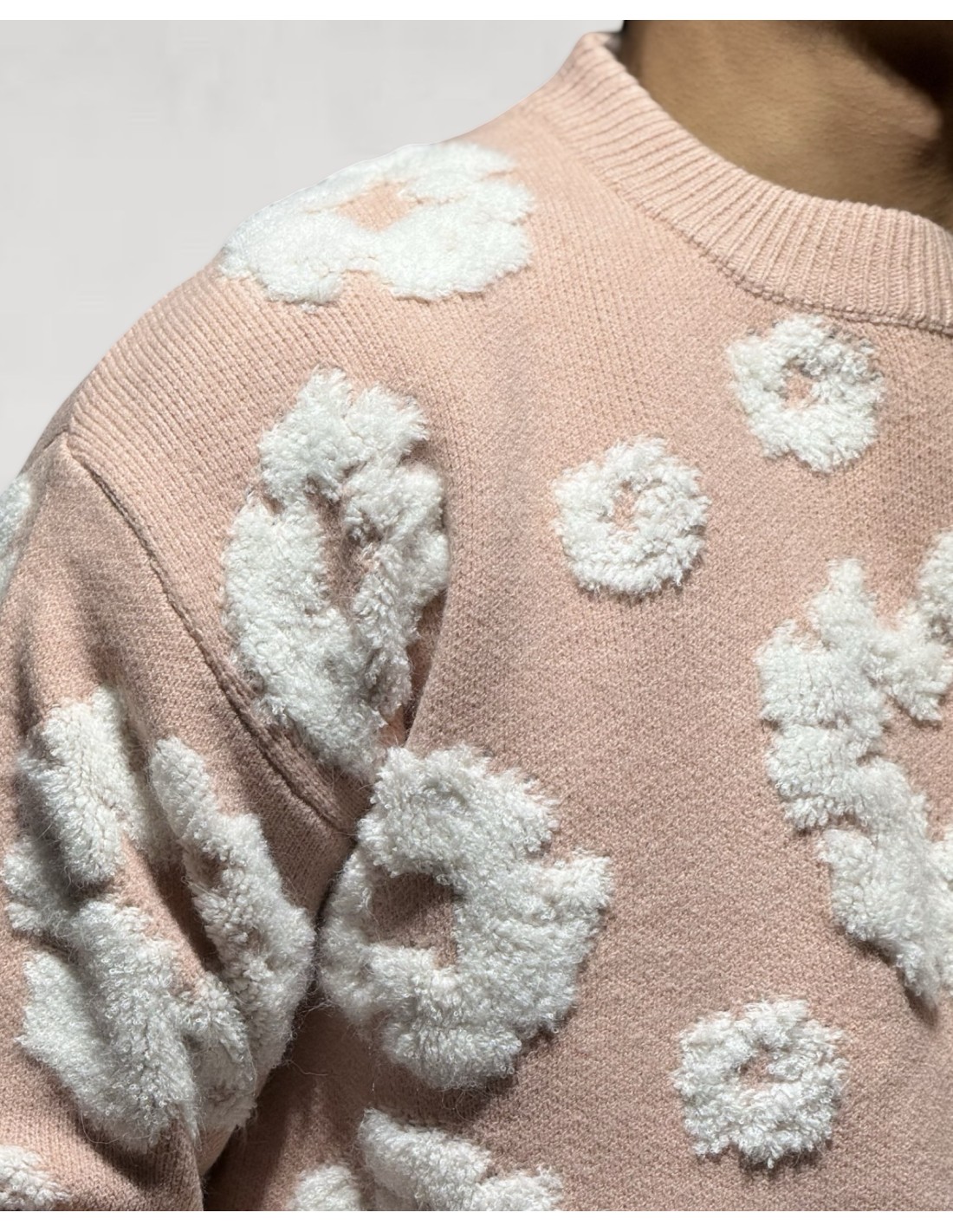 Allure affirmée et style moderne pour ce pull texturé à fond rose et motifs blanc. Sa maille épaisse et structurée offre un confort chaud et un tombé impeccable. La coupe droite légèrement oversize et les finitions côtelées au col, poignets et bas soulignent son esprit contemporain. Idéal avec un jean clair ou un pantalon ajusté pour un look urbain maîtrisé.