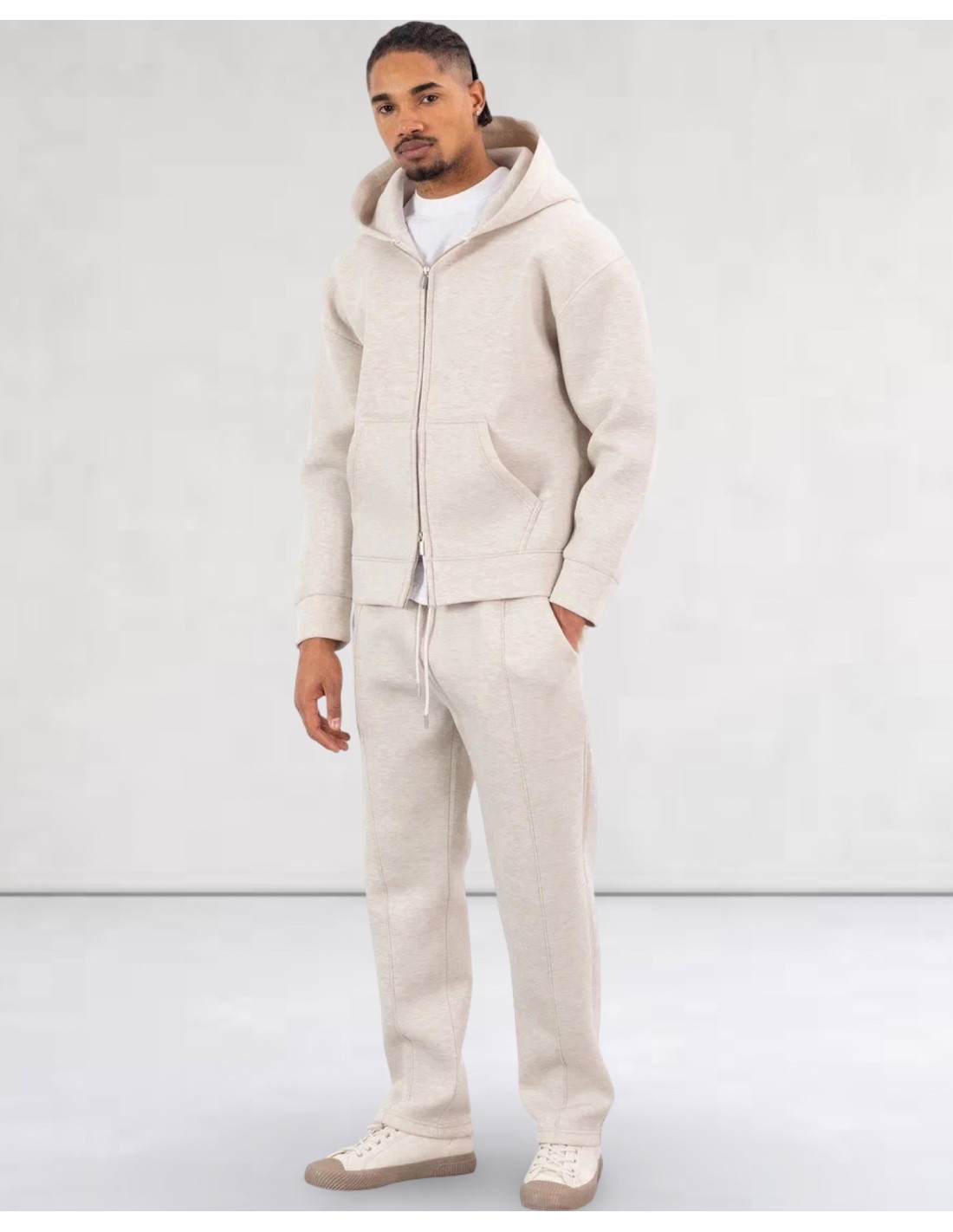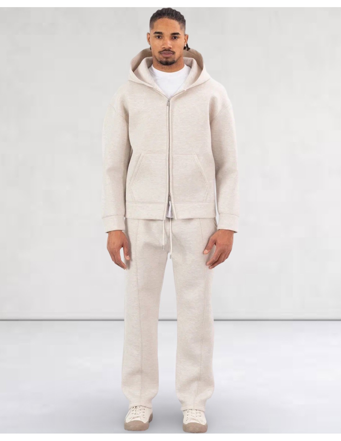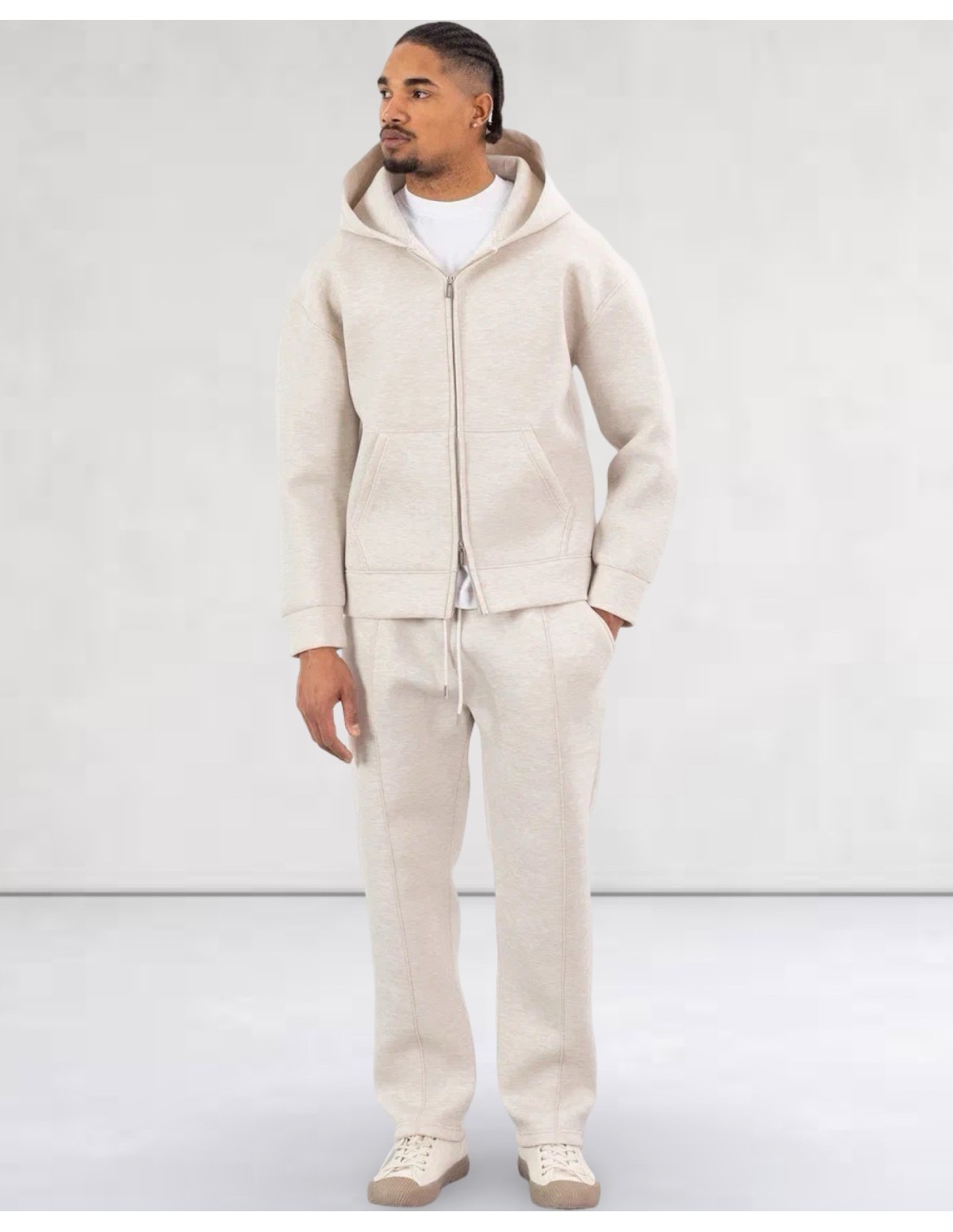 ENSEMBLE DE SPORT EFFET NÉOPRÈNE COUPE DÉCONTRACTÉE À CAPUCHE BEIGE