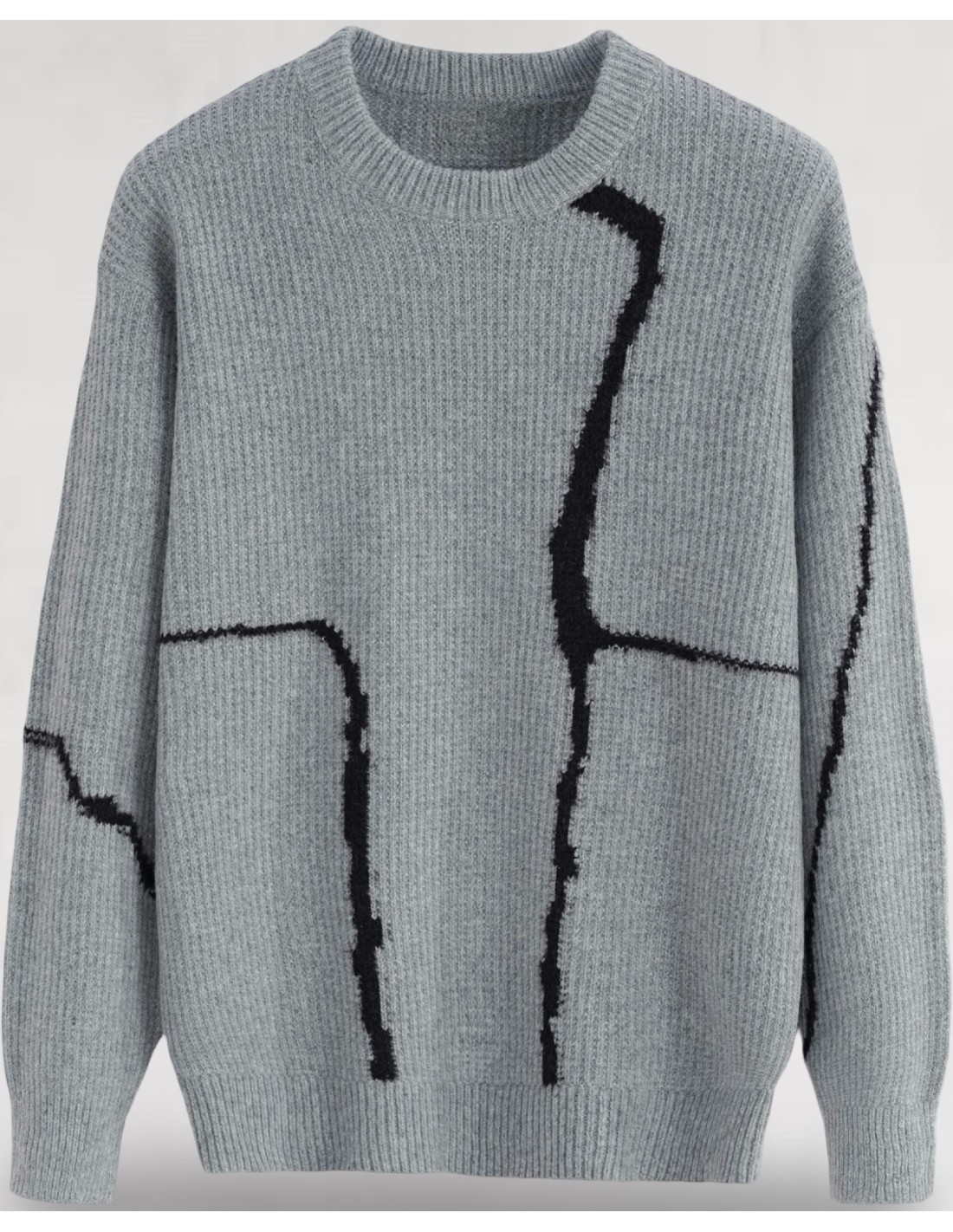 Pull gris en maille lignes artistique
