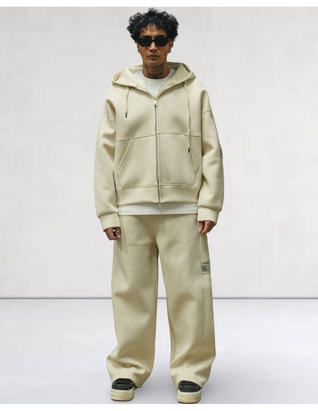 Ensemble beige confectionné en tissu technique avec élasticité type néoprene