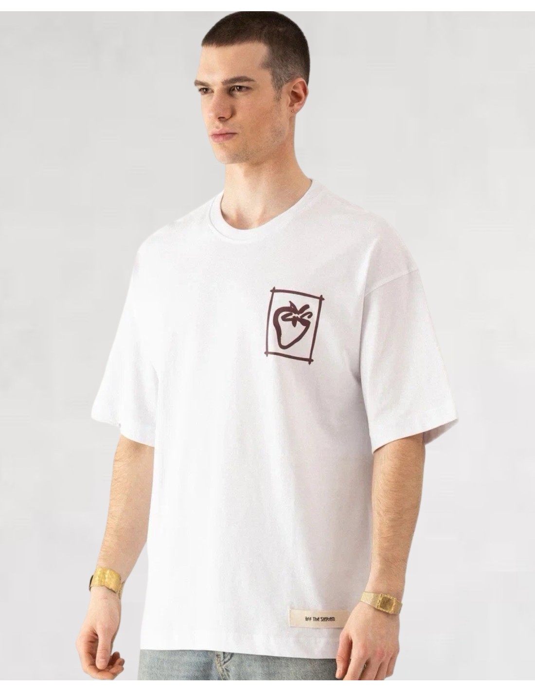 T-shirt blanc en 100 % coton, pensé comme une toile d’expression graphique. La coupe droite offre un tombé naturel et structuré, équilibrant confort et présence visuelle. À l’avant, un marquage poitrine discret reprend le symbole iconique COME ON, posé comme une signature intime.