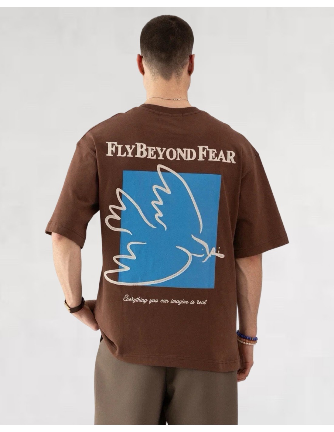 T-shirt marron en 100 % coton, pensé comme une pièce forte et actuelle. La coupe ample apporte un volume maîtrisé et une allure résolument moderne. Le design joue le contraste : face avant épurée, presque silencieuse, pour un rendu clean et contemporain.