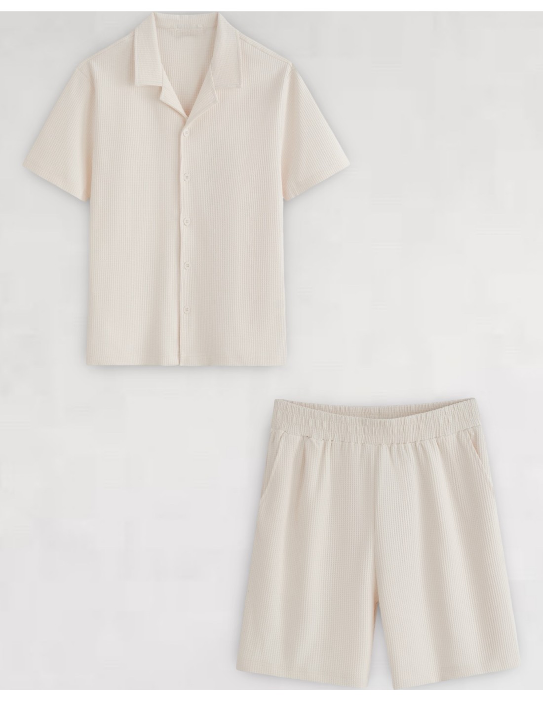 ENSEMBLE GAUFFRÉ BLANC CHEMISETTE ET SHORT