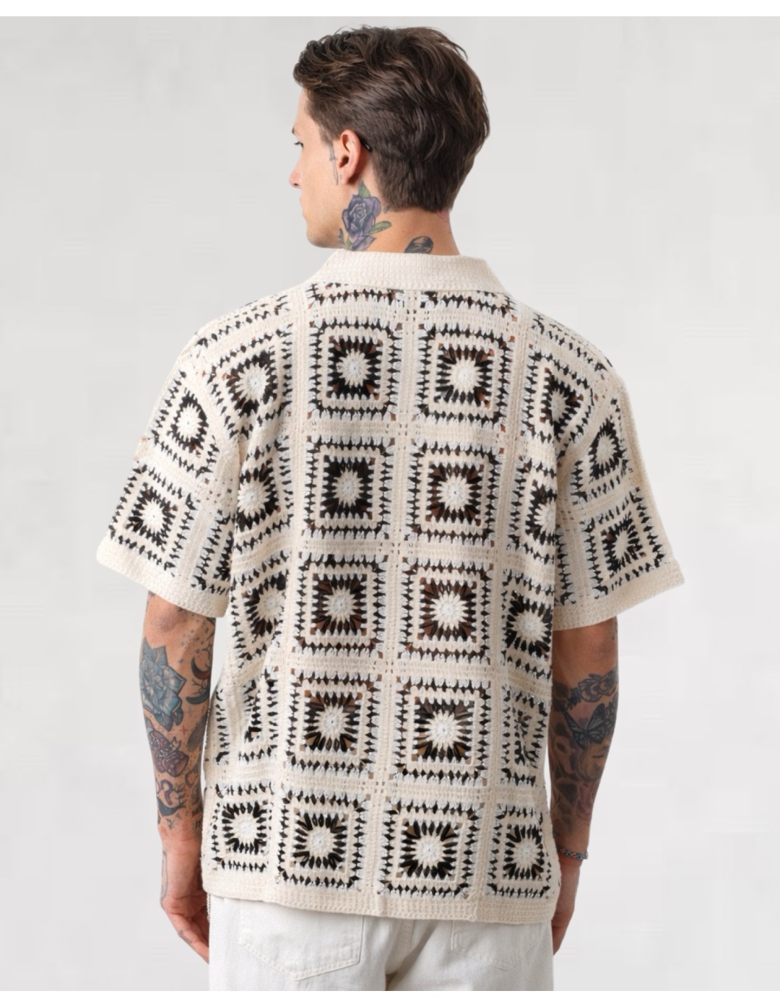 Chemise en crochet à motifs écru