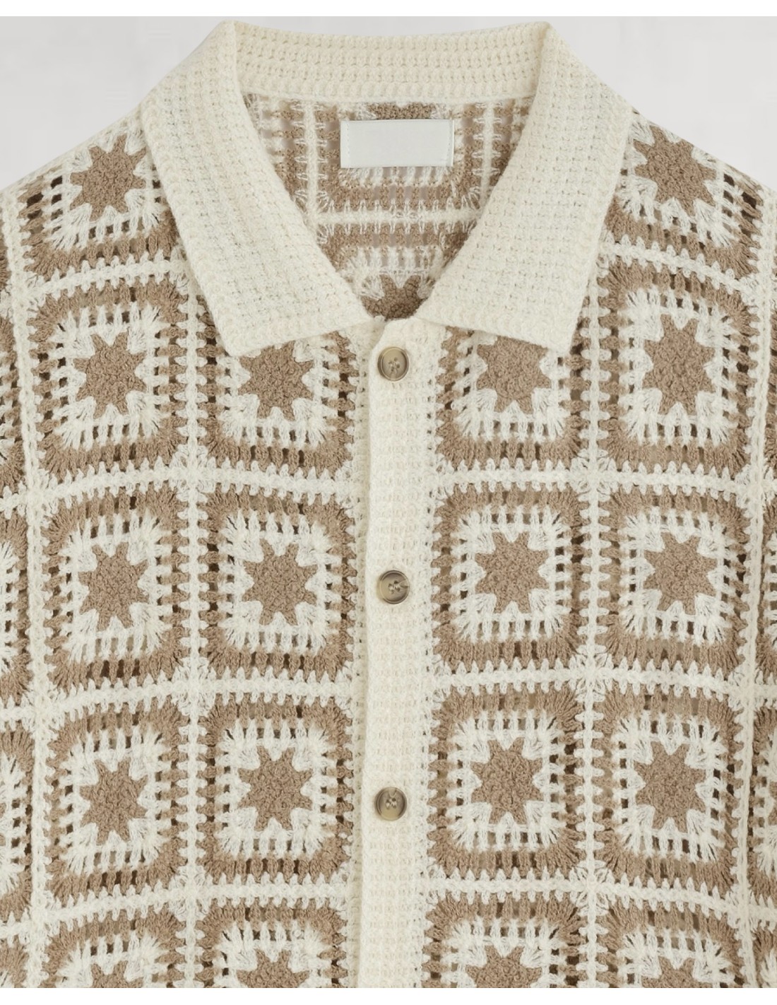 CHEMISETTE A MOTIFS EN CROCHET BEIGE