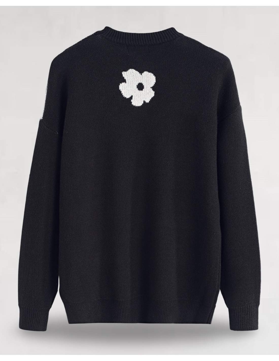 Pull noir à motif fleurs