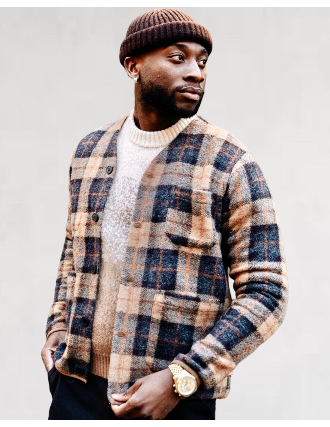 Alliant chaleur et élégance, cette veste en laine à carreaux est une pièce incontournable pour l'automne et l'hiver.