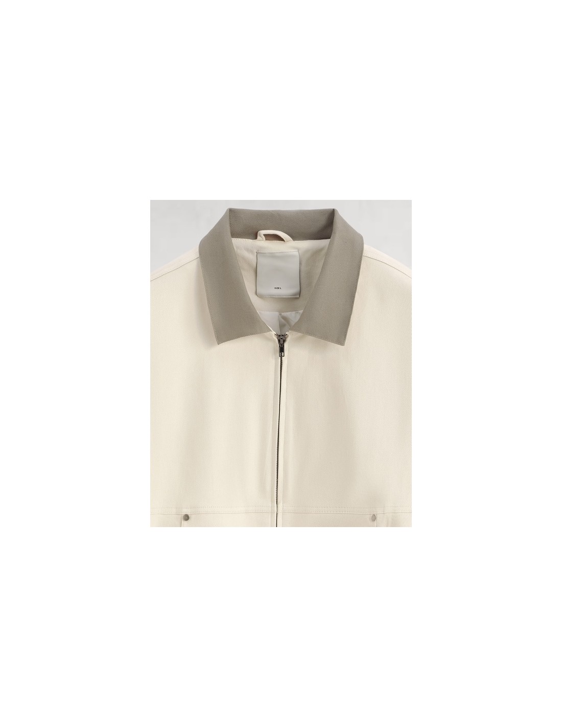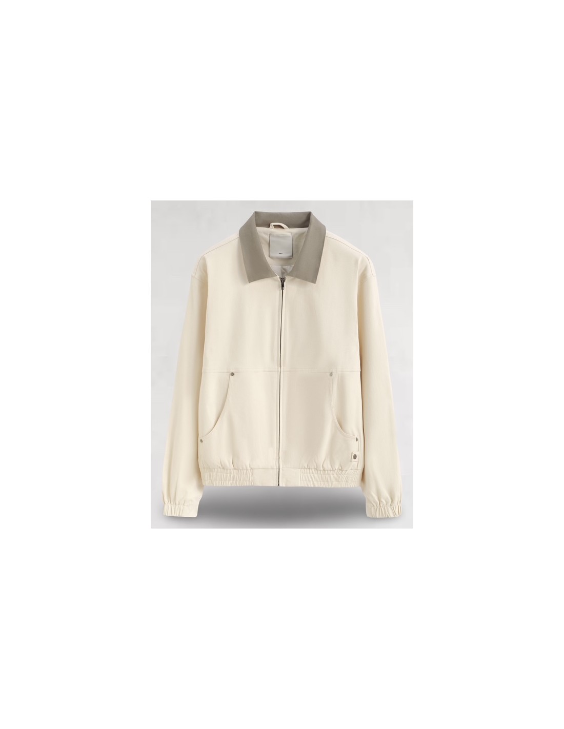 Cette veste beige contrasté avec son col chemise marron, est parfaite pour vos tenues du moment.