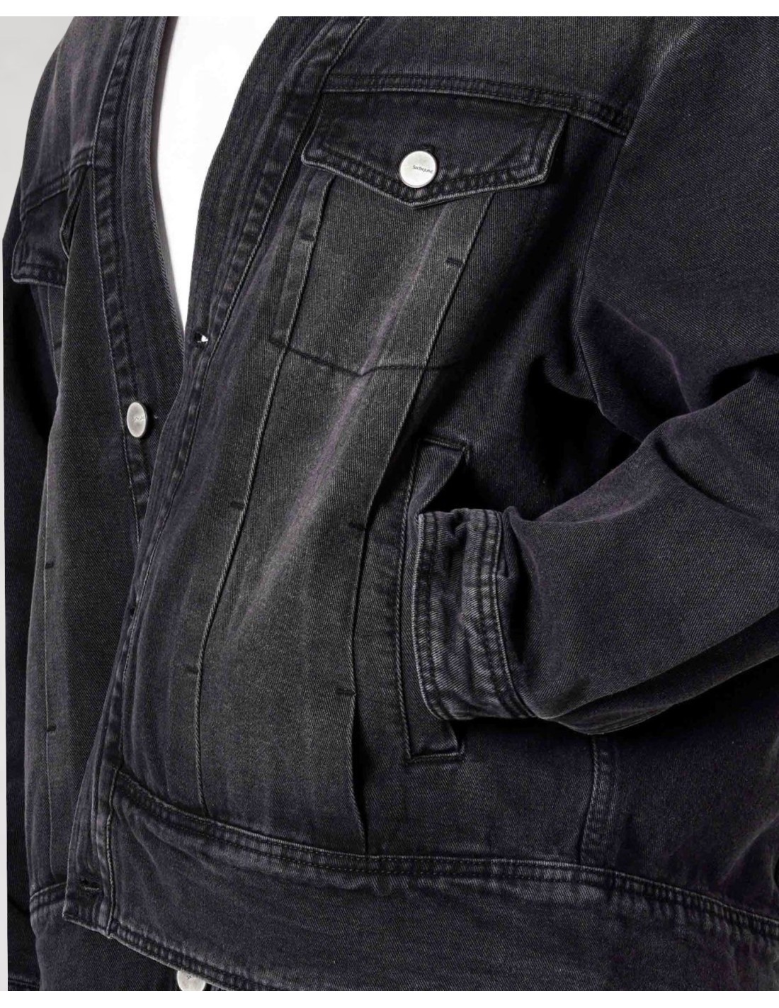 Cette veste en jean revisite un classique du vestiaire avec une coupe original et affirmé. Son denim fris foncé à l'aspect délavé lui confère une allure très moderne.